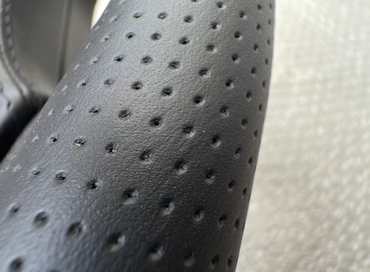 Perforated leather shows no pulling, stretching, or fading