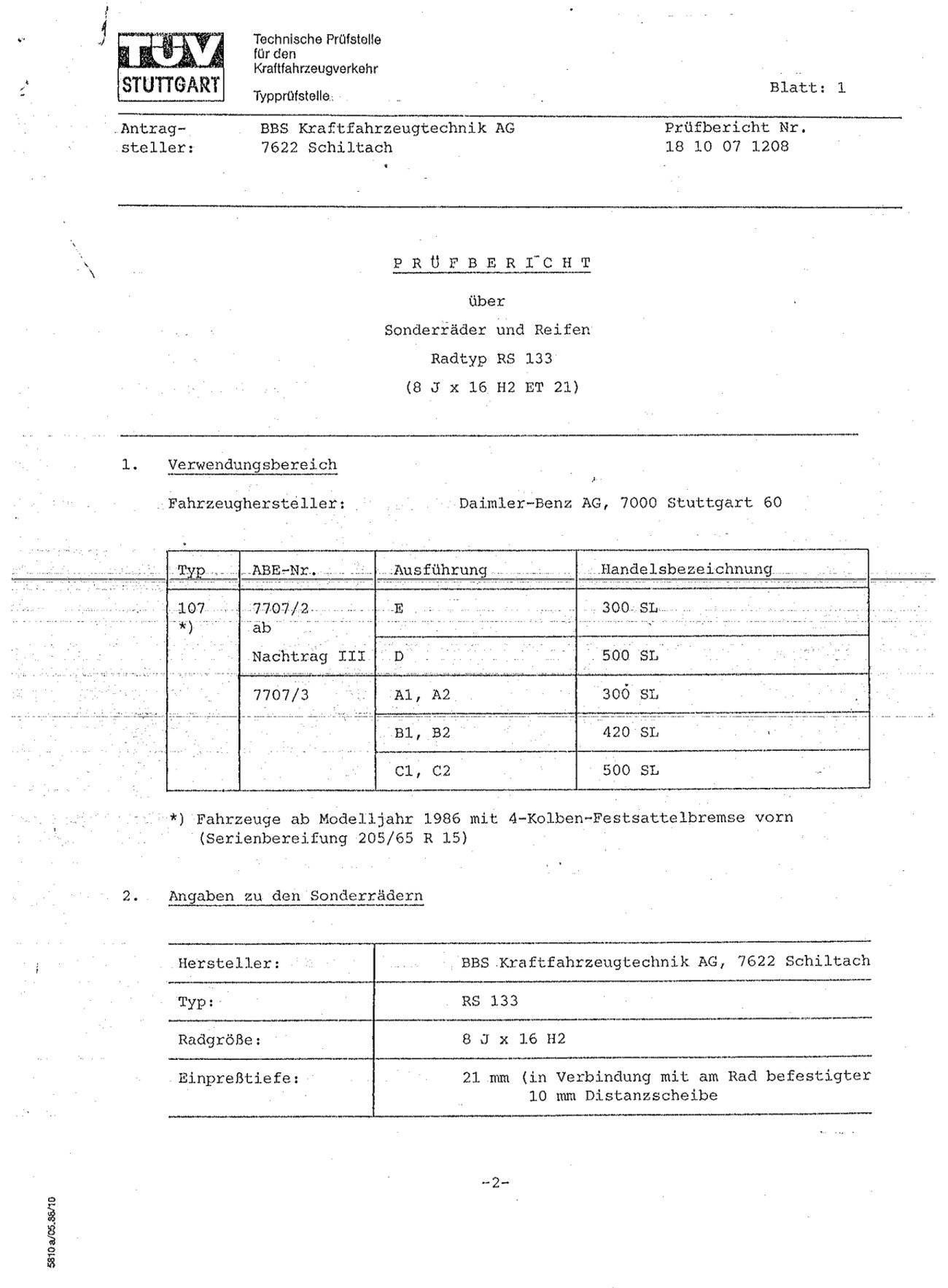 Manufacturer: BBS, Germany