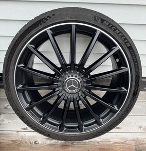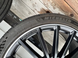 Mounted Michelin Pilot Sport 4S tires are included, sized 255/35R21, with 2022 date codes (31st week) and an estimated 20k miles of use. Minor touch-ups were performed by a Mercedes-Benz dealer to correct light cosmetic imperfections.